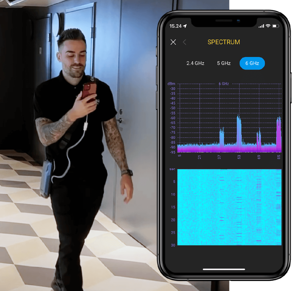 Bộ phân tích phổ độ phân giải cao trong Ekahau Sidekick 2 hiển thị nhiễu RF theo thời gian thực. Tự động phát hiện các nguồn gây nhiễu Wi-Fi phổ biến nhất và có được cái nhìn rõ ràng về mạng của bạn. Khắc phục sự cố nhanh chóng và giải quyết cả các vấn đề liên quan đến Wi-Fi và không liên quan đến Wi-Fi trong tích tắc.